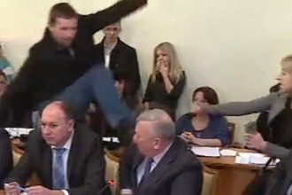 Нардеп сорвал флаг с консульства России во Львове