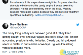 Соучредитель Центра исследования коррупции и организованной преступности Дрю Салливан, комментируя расследование вокруг документов Panama Papers, обвинил президента Петра Порошенко и его юристов во лжи.