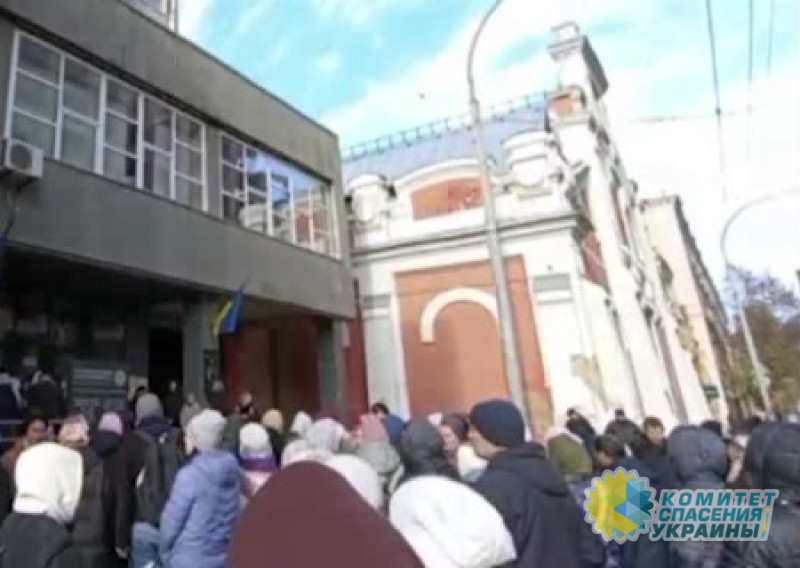 Под Шестым апелляционным административным судом, где проходило собралось множество верующих УПЦ. В зал заседаний их не допустили.