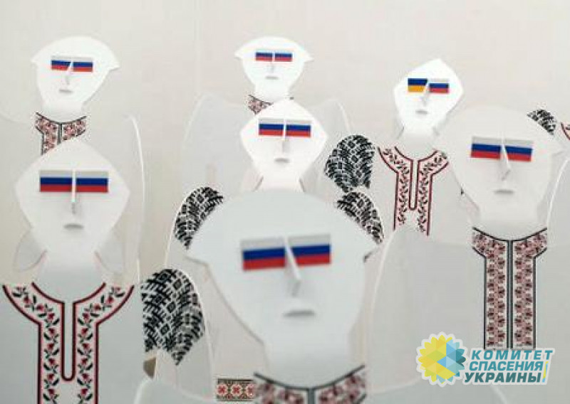 Украинцы на коленях, вместо глаз флаг РФ